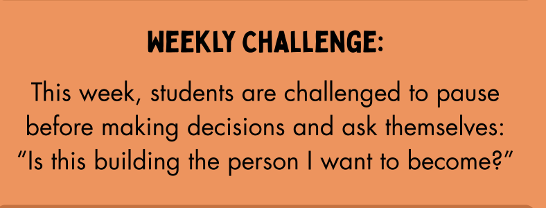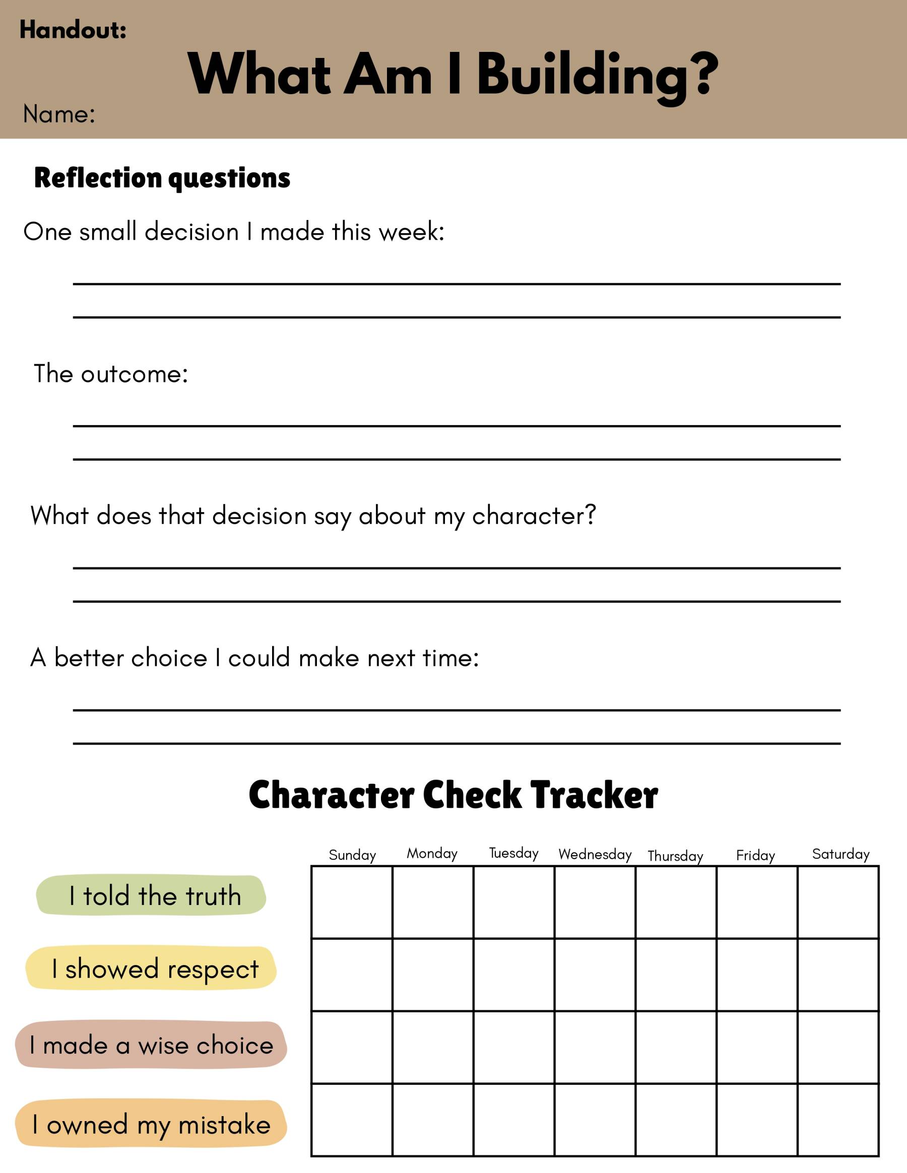 We’ve challenged students to focus on one character trait this week and track how they demonstrate it each day. The tracker encourages daily reflection and accountability.
